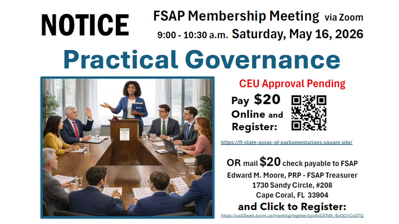 FSAP Presents: Multiple Opportunties to Learn Parliamentary Procedures – Check out your FREE options